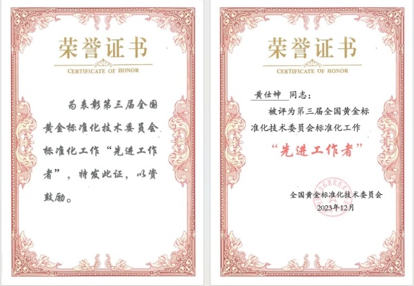 黄仕坤董事长被评为第三届全国黄金标准化技术委员会标准化工作“先进工作者”