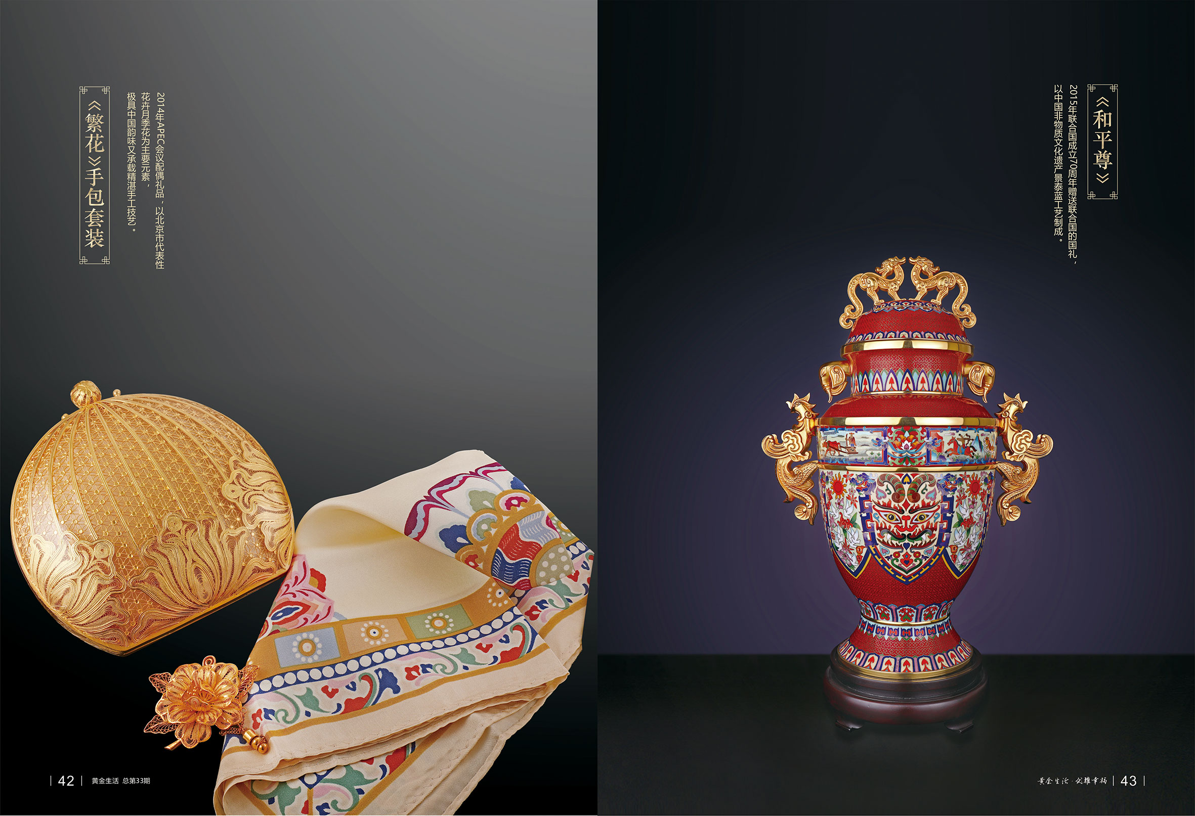 《和美》纯银丝巾果盘、《四海升平》景泰蓝赏瓶